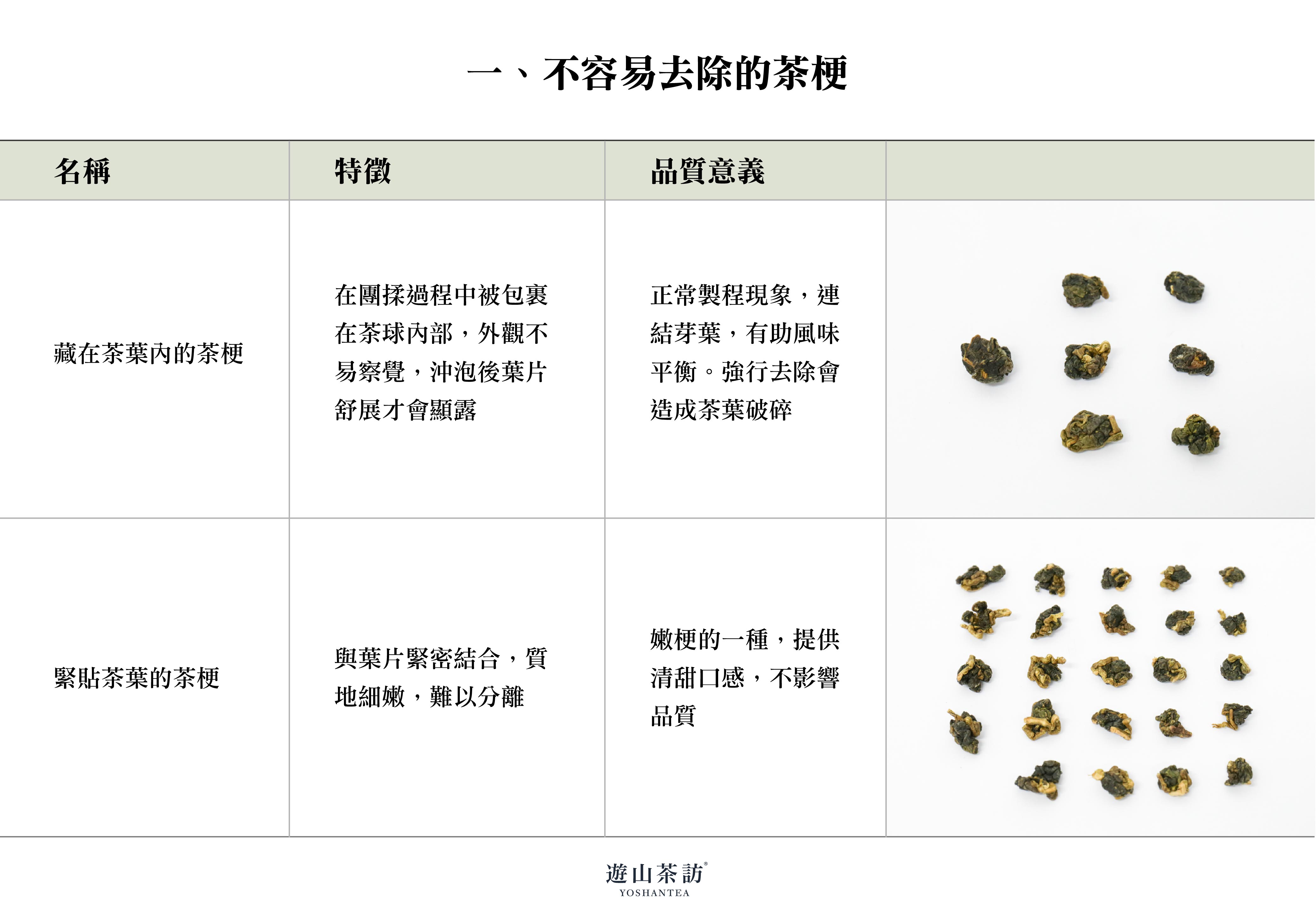 這些不同型態的茶梗,在品質判斷上有不同的意義。